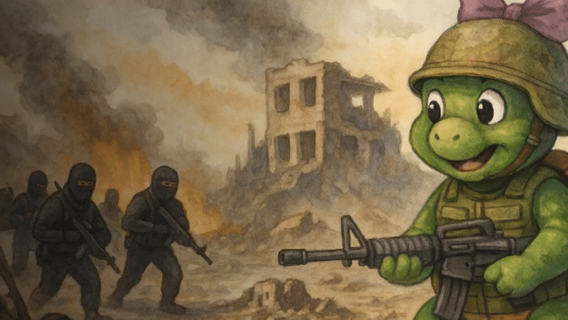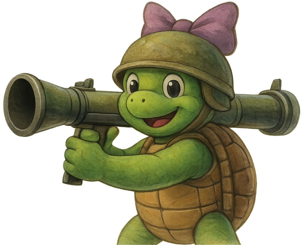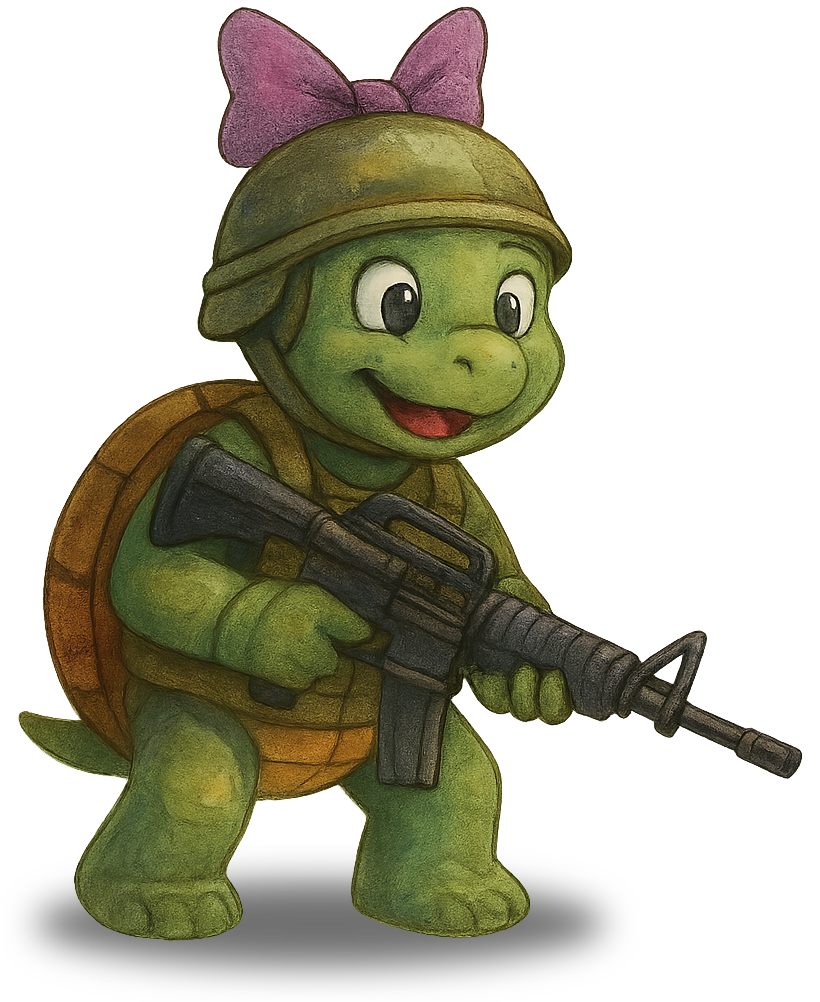 Harriet wasn’t meant for chaos, but somehow she became its most calm participant. A tiny turtle walking through smoke like it’s nothing, carrying gear she definitely shouldn’t have. Nobody knows her mission. She just keeps moving, slow and unbothered, like the world can wait.